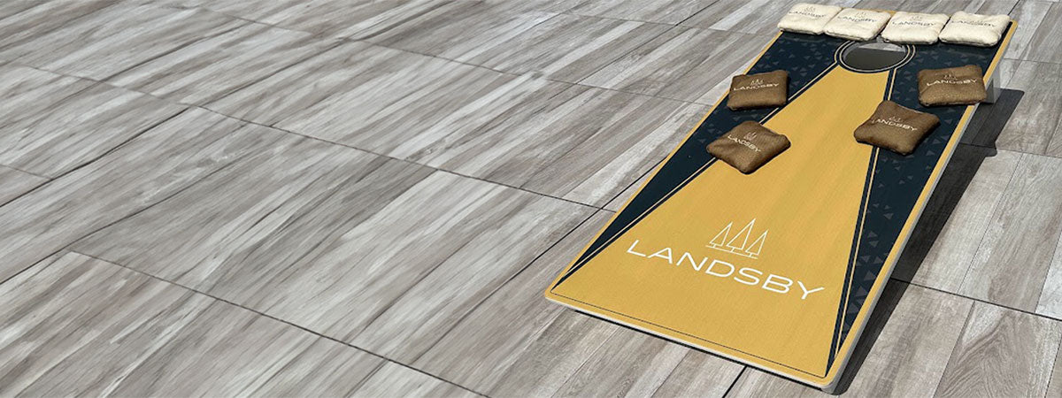 Yup! Our boards are made of 3/4" thick PVC plastic that weighs and plays just like wood, but can be exposed to or even submerged in water. Perfect for any place that wants a custom look with no hassle!